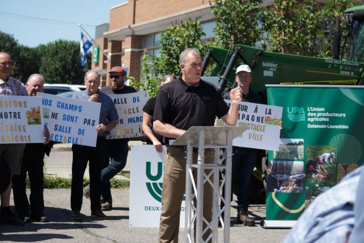 La multiplication des usages de terres cultivables à des fins touristiques plutôt qu’agricoles met en péril la protection des terres agricoles au Québec, a revendiqué l’UPA en conférence de presse à Saint-Eustache le 18 juillet. Le président général de l’UPA, Martin Caron, le président du Syndicat de l’UPA Deux-Montagnes, Philippe Leroux, ainsi que le président de la Fédération de l’UPA Outaouais-Laurentides, Stéphane Alary, ont tour à tour dénoncé le phénomène sur un ton revendicateur.
